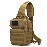 Многофункциональная мужская сумка рюкзак через плечо на одной лямке. Обладает всеми достоинствами компактного однолямочного тактического рюкзака на каждый день. Будет незаменимым помощником в тактических условиях, охоте, рыбалке, а так же в повседневной городской суете. Материал рюкзака оксфорд 900D. По всей поверхности рюкзак оснащен стропами MOLLE. Лямка с вентилируемой вставкой Airmesh. Имеет два небольших кармашка. Лямка регулируемая с фастексом для быстрого сброса. Ручка для удобного ношения в руках. На молниях вместо вечно дребезжащих замков бегунки аккуратно продеты паракордом с запаянными наконечниками. На дне рюкзака есть два специальных отверстия для удаления воды и пыли. На фронтальной стороне два отсека с органайзером и карабином для ключей. Основное отделение довольно объемное с двумя карманами на молнии и один закрывающийся на липучку. На спинке скрыто еще одно отделение рекомендованное для транспортировки оружия самообороны, закрывается кнопкой. Размеры: 30×24×14 см. (высота/ширина/толщина)