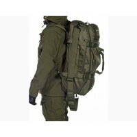 • Сверху тактического рюкзака-сумки расположена удобная ручка с мягкой накладкой и накладной карман на молнии;