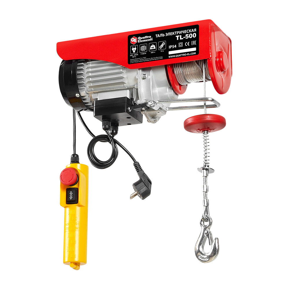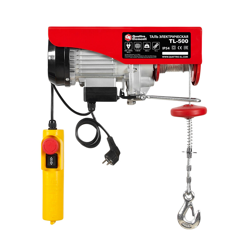 Купить Таль электрическая QUATTRO ELEMENTI TL- 500 (1100 Вт, 250/500 кг, трос 12 м) (793-695) с доставкой по всей России. Таль электрическая QUATTRO ELEMENTI TL- 500 (1100 Вт, 250/500 кг, трос 12 м) (793-695): сравнение цен, характеристики, фото, актуальное наличие и цены.