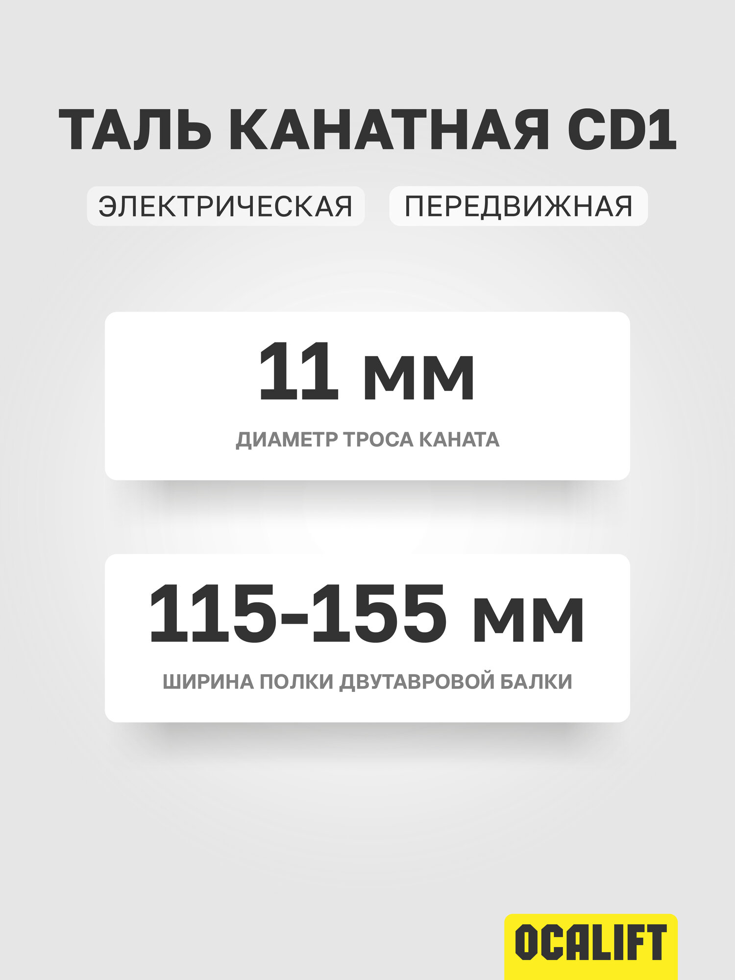 Купить Таль передвижная ТЭК OCALIFT CD1 2т высота 6м канатная электрическая 380в с доставкой по всей России. Таль передвижная ТЭК OCALIFT CD1 2т высота 6м канатная электрическая 380в: сравнение цен, характеристики, фото, актуальное наличие и цены.