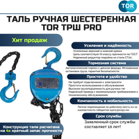 Таль ручная шестеренная TOR ТРШ C 1ТХ6М PRO (для тяжелых работ): сравнение цен, характеристики, фото, актуальное наличие и цены.