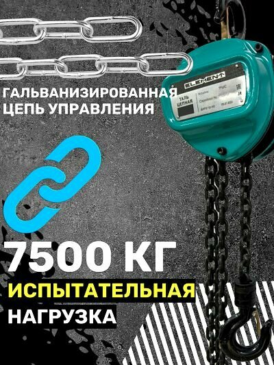 Таль ручная цепная ELEMENT, грузоподъемность 10 т, высота подъема 9 м