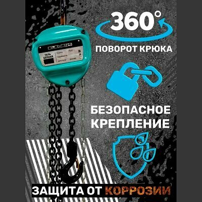 Таль ручная цепная ELEMENT, высота подъема 12 м, грузоподъемность 5 т, цвет бирюзовый