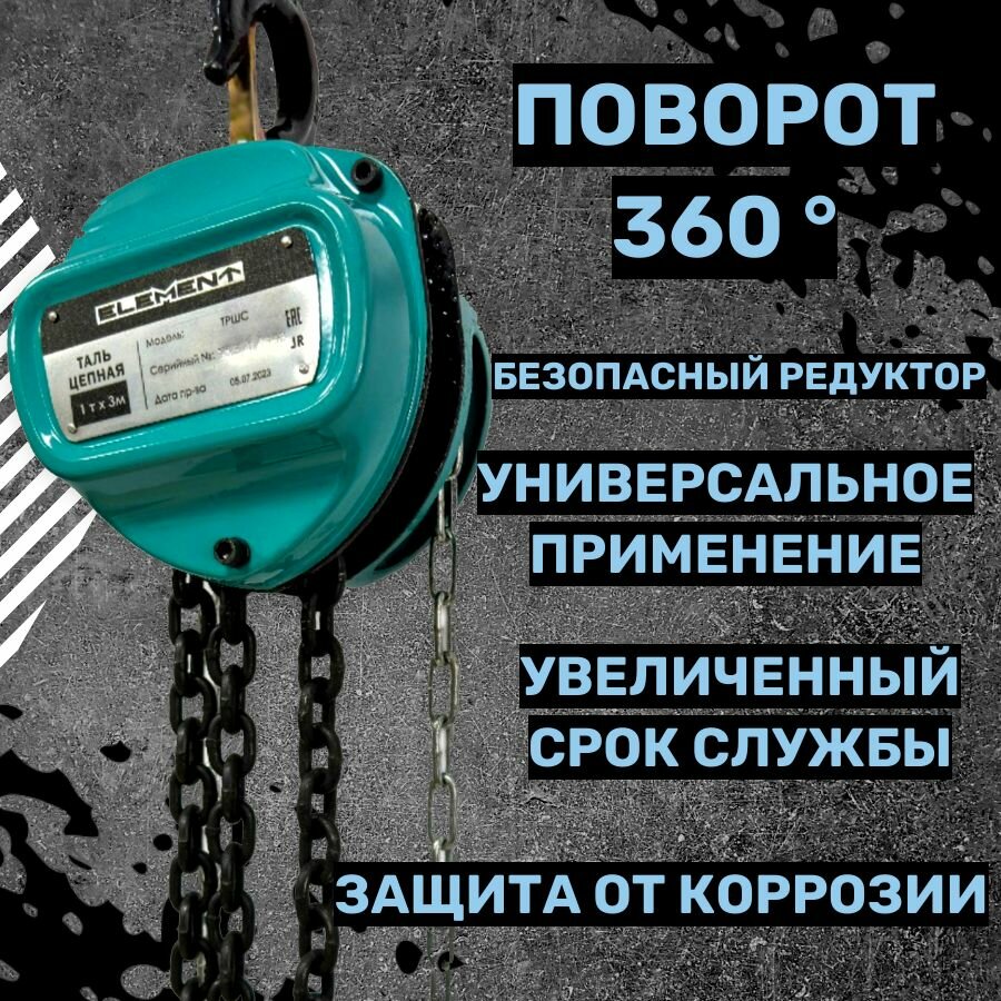 Таль ручная цепная ELEMENT, высота подъема 12 м, грузоподъемность 3 т: сравнение цен, характеристики, фото, актуальное наличие и цены.