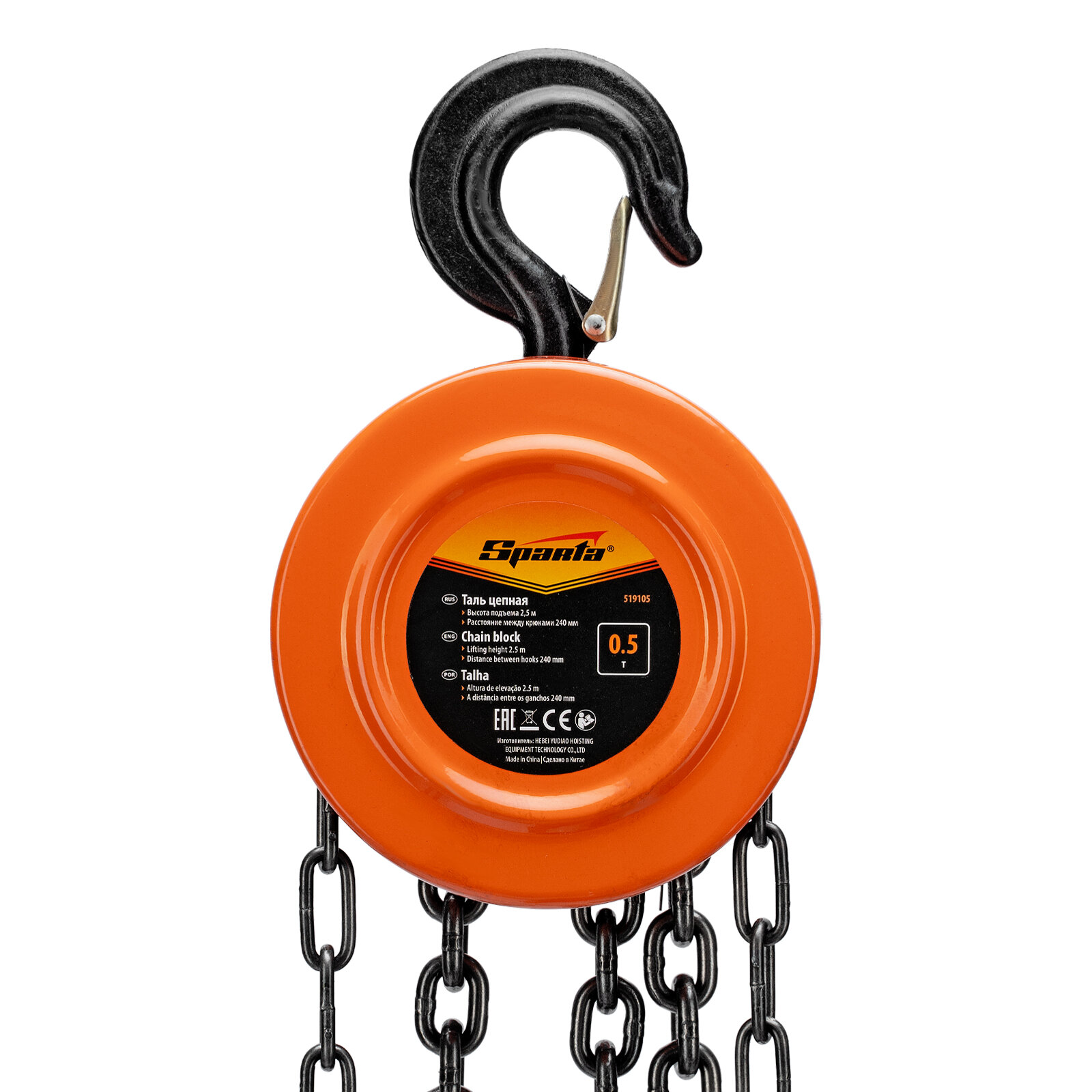 Купить Таль цепная, 0.5 т, H подъема 2.5 м, расстояние между крюками 240 мм Sparta 519105 с доставкой по всей России.