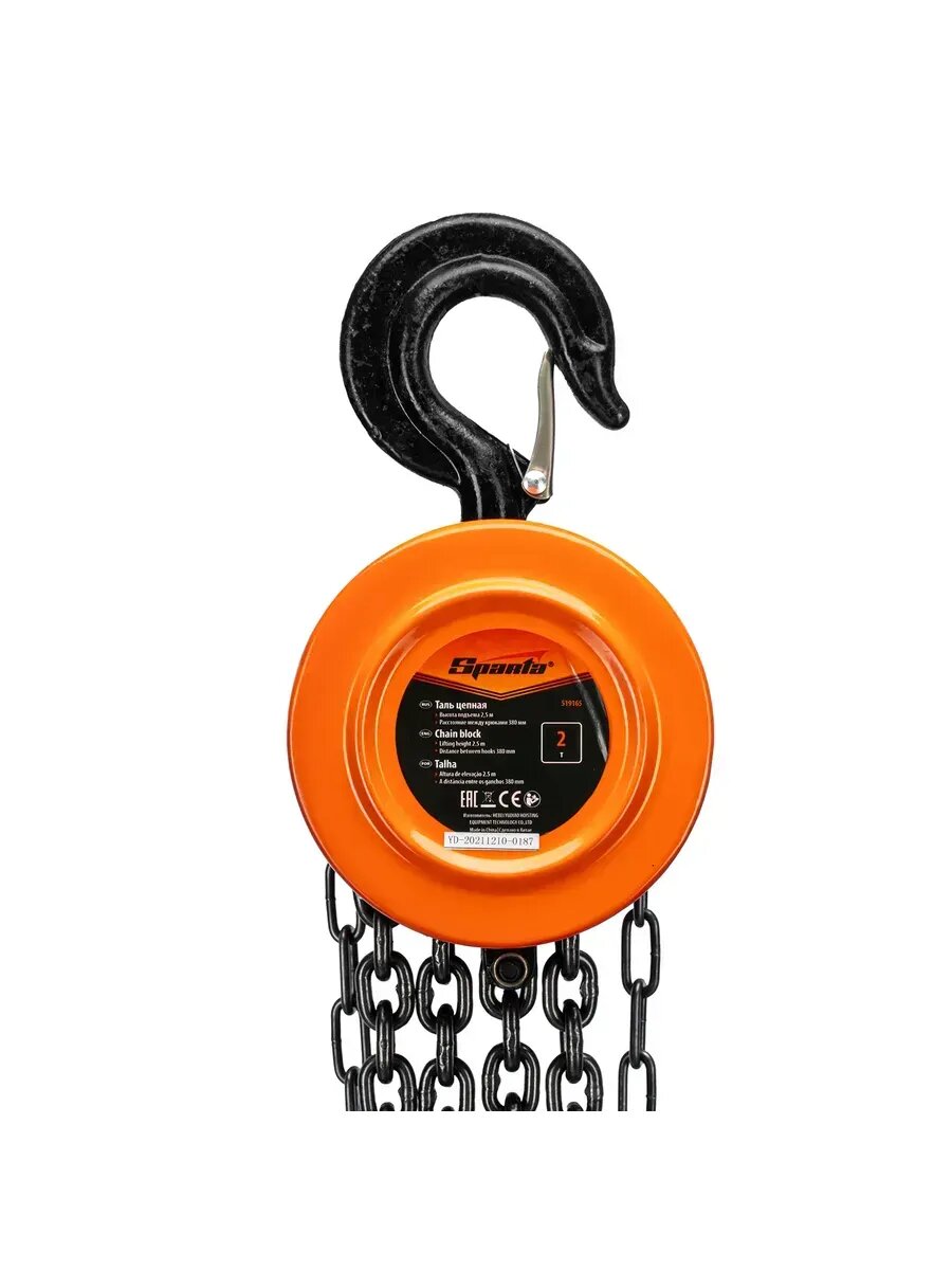 Таль цепная ручная 2 т, подъем 2.5 м, 380 мм, SPARTA 519165