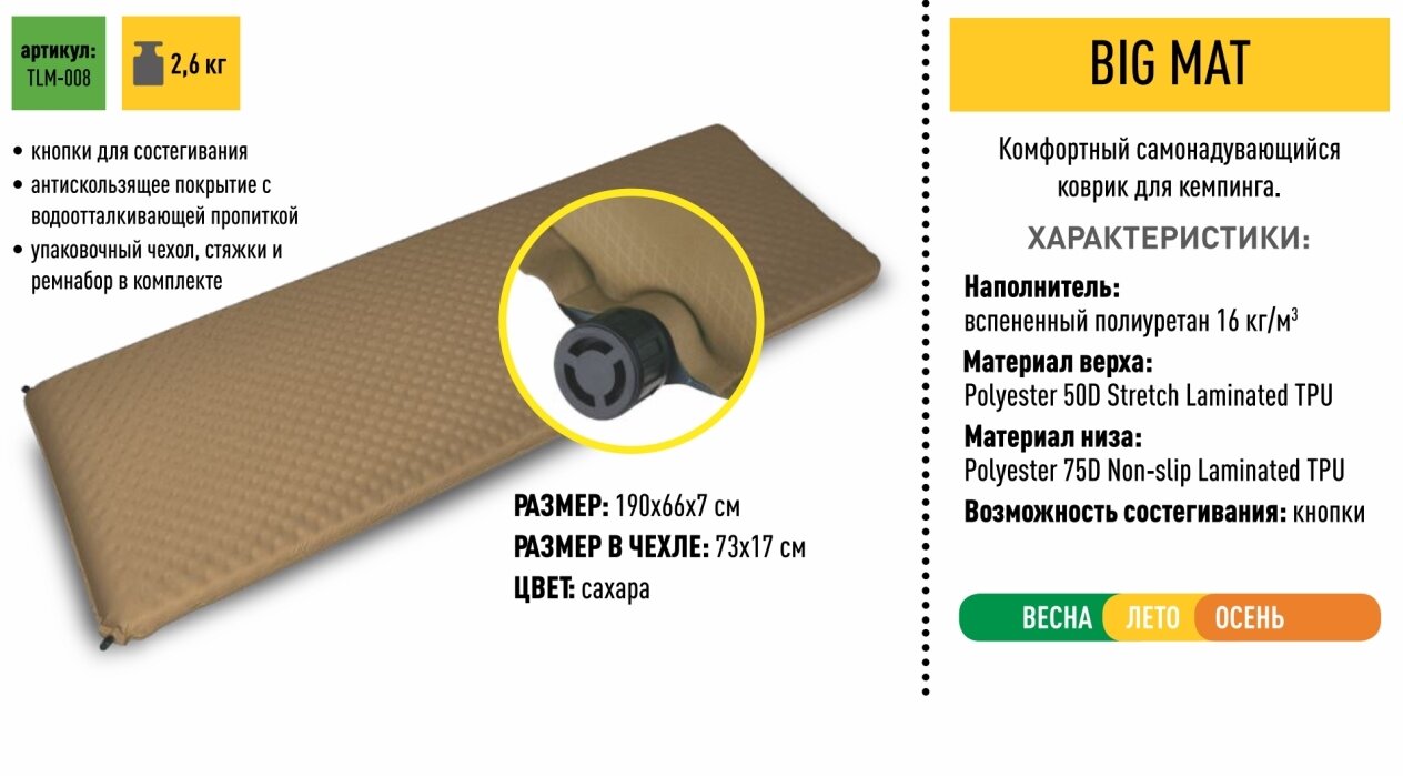 Коврик самонадувающийся туристический Talberg BIG MAT 190х66×7см, бежевый: сравнение цен, характеристики, фото, актуальное наличие и цены.