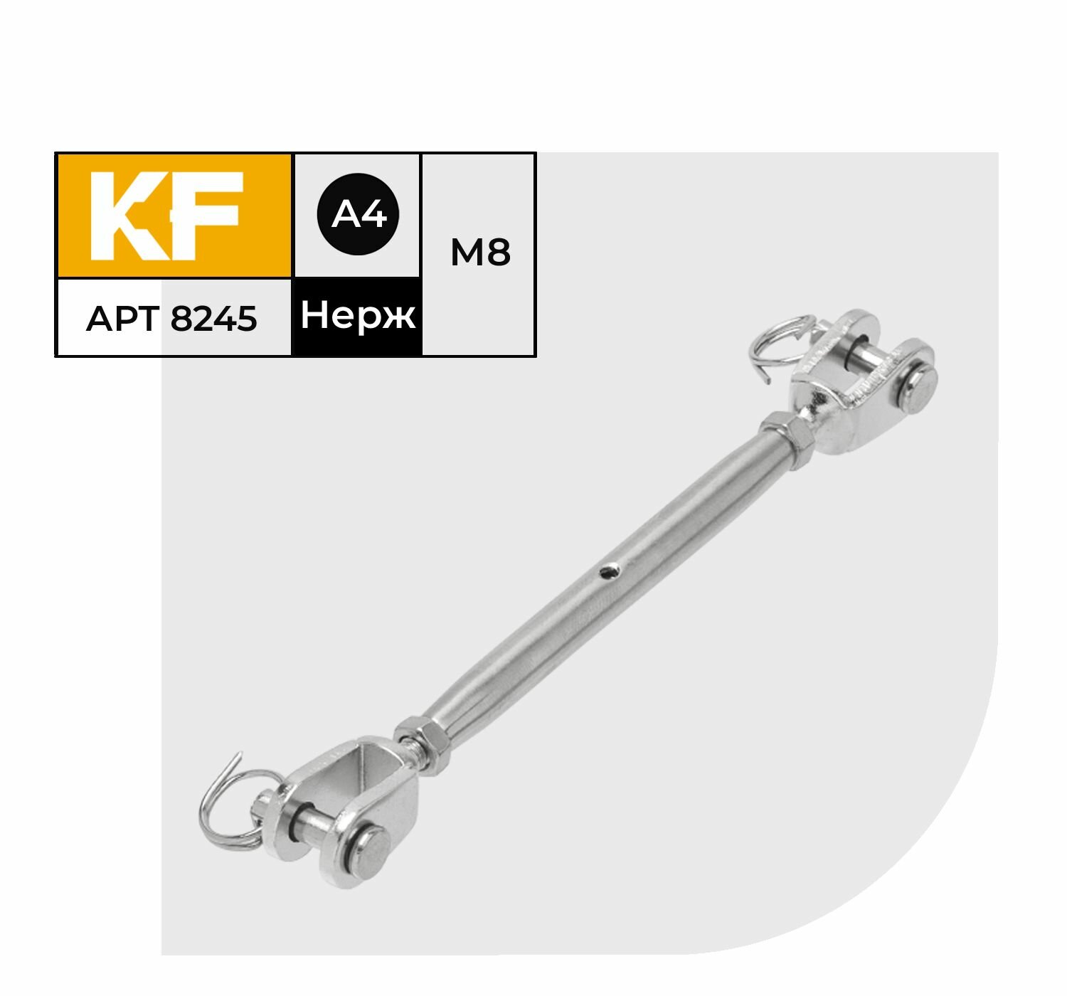 Талреп закрытый вилка-вилка АРТ 8245 из нержавеющей стали А4* предназначен для регулировки натяжения в такелажных растяжках, в строительстве и при грузоперевозках.