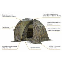 Материал тента – Оксфорд 300 PU 4000. Ткань с водостойкой пропиткой и проклеенными швами обеспечивает сухость в тамбуре.