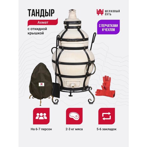 Купить Тандыр «Ахмат» с откидной крышкой + подставка, чехол и перчатки с доставкой по всей России.