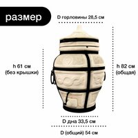 Толщина стенки - 5 см (+/-0.5см) Высота - 82 см Высота без крышки - 61 см Внутренний диаметр горловины - 28,5-29 см Диаметр - 54 см Внешний диаметр дна - 33,5 см Кол-во шампуров в комплекте - 8 шт. (длина рабочей части - 42,5 см / общая длина - 50.5 см) Комплектация - кочерга, совок, приспособление для подвешивания шампуров - по 1 шт. Вес - 97 кг (+/-4 кг) Объем - 55 л Тандыр Есаул относится к средним тандырам, которые предполагают стационарную эксплуатацию. это высококачественная печь-жаровня, которая отлично подходит для приготовления разноплановых блюд. Тандыр станет вашим надёжным помощником, ведь умеет готовить продукты так, чтобы они не потеряли своих полезных качеств, были полностью приготовленными и очень вкусными. «Есаул» самостоятельно справится с приготовлением блюда. Контролировать нужно только время запекания. Красивый, удобный в приготовлении, прожаривает равномерно. Можно, жарить, коптить, выпекать, варить на нём.