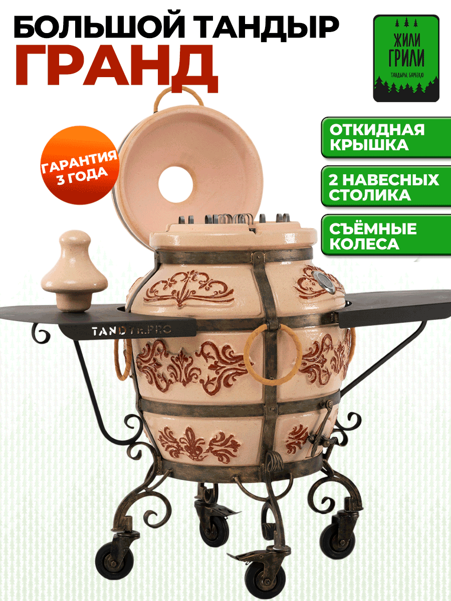 Тандыр Гранд, с откидной крышкой, со столиками, на колесах, цвет слоновая кость: сравнение цен, характеристики, фото, актуальное наличие и цены.