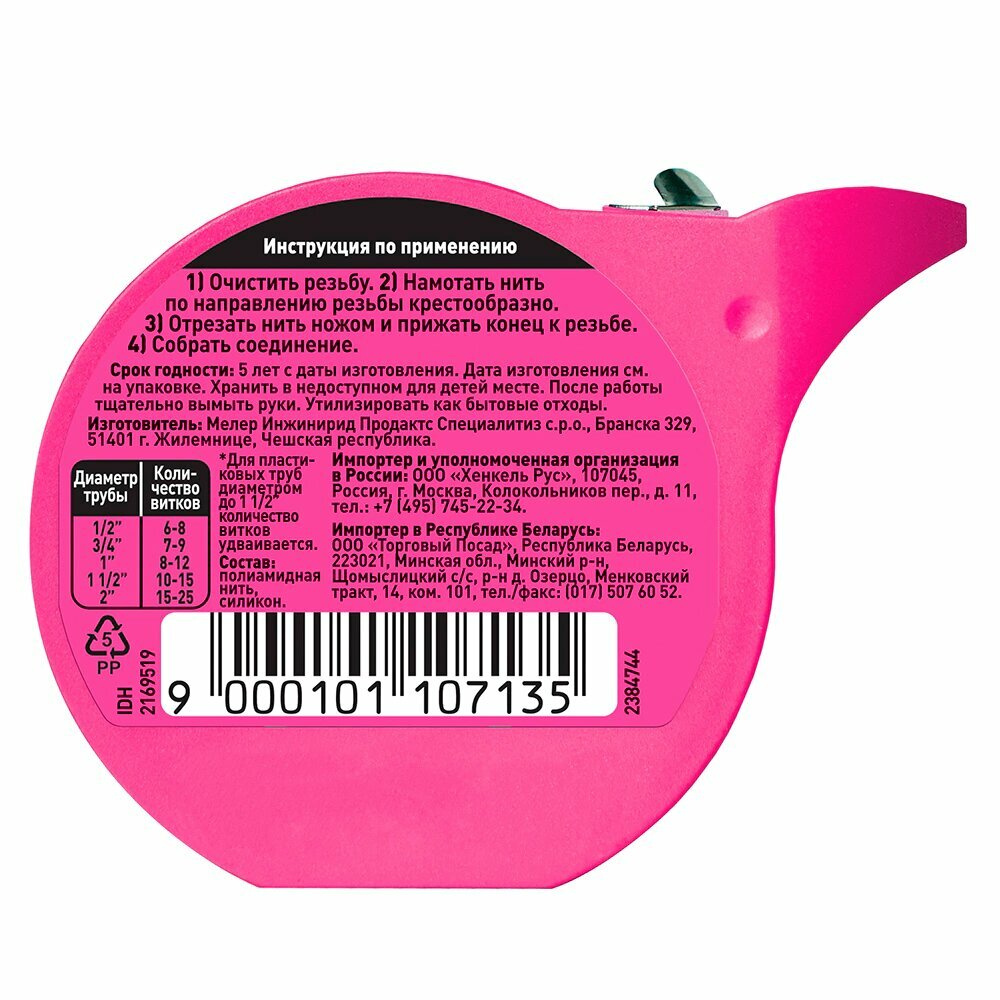 Нить Tangit Uni-lock (Тангит Уни-Лок) находится в удобном плоском корпусе выполненном из пластика. Металлическая скоба возле выступа позволяет оперативно отрезать необходимое количество нити. Продукт используется для герметизации конической и цилиндрической резьбы муфт и фитингов. Подмотка удобна для быстрой подготовки резьбового соединения к работе, а также допускает небольшую регулировку перед использованием. Характеристики: Материал продукта: обработанная полиамидная многоволоконная нить. Устойчивость к воздействию температуры и давления:- газ: от -20°С до +70°С, 5 бар;- горячая вода: до +130°С, 7 бар;- питьевая вода: до +85°С, 16 бар. Внимание! Не рекомендуется применять нить в системах с чистым кислородом и/или насыщенных кислородом, а также для хлора или других сильных окислителей, бензина, дизельного топлива или топливного масла.