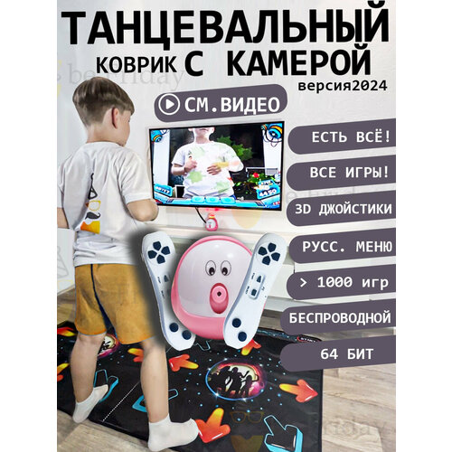 (Смотрите видео в карточке) Танцевальный коврик с графикой 64 бит и видеокамерой - это модель в которой есть ВСЕ и в лучшем виде! Танцы, Камера, Джойстики, Денди, Диско-шар, Играем ногами, руками, джойстиками, и просто взмахами рук! Он подключается к ТВ по кабелю HDMI. Всего в комплекте около 1000 игр. В играх с камерой камера сканирует игрока и далее управляете руками в играх! Можете руками рубить фрукты, боксировать, отбивать мячи и т. д. В танцевальную игру можно добавить свою музыку, а не играть на встроенной! Можно играть в игры денди, логические, развивающие, танцевальные, подвижные. В этой модели есть все что может быть в танцевальных ковриках. Играйте и становитесь лучшим танцором с танцевальным ковриком от be friday!