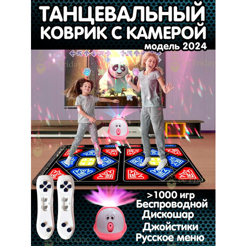 Танцевальный коврик двойной беспроводной с видеокамерой (утолщенный материал покрытия, не мнется и не сминается). В этой модели есть ВСЕ и в лучшем виде! Танцы, Камера, Джойстики, Денди, Дискошар, Йога, Фитнес и т. д. Русское меню. Играем ногами, руками, джойстиками, головой и просто взмахами рук! Он подключается к ТВ по кабелю HDMI. Всего в комплекте около 1000 игр. В играх с камерой камера сканирует игрока и далее управляете руками в играх! Можете руками рубить фрукты, боксировать, отбивать мячи и т. д. В танцевальную игру можно добавить свою музыку, а не играть на встроенной! Можно играть в игры денди, логические, развивающие, танцевальные, подвижные. В этой модели есть все что может быть в танцевальных ковриках. Играйте и становитесь лучшим танцором с танцевальным ковриком от be friday!