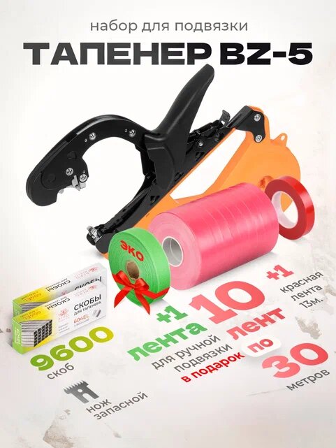 Тапенер BZ-5 + 10 лент + скобы 9,600 шт + ремкомплект / Степлер садовый / Подвязчик томатов винограда и других растений: сравнение цен, характеристики, фото, актуальное наличие и цены.