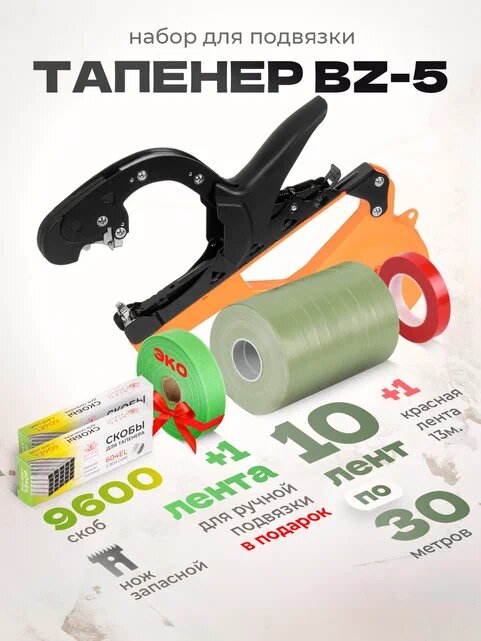 Тапенер BZ-5 + 10 оливковых лент + скобы 9 600 шт + ремкомплект, Степлер садовый для подвязки томатов винограда и других растений: сравнение цен, характеристики, фото, актуальное наличие и цены.