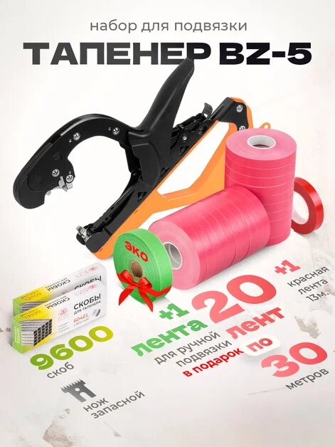 Тапенер BZ-5 + 20 лент + скобы 9600 шт + ремкомплект / Степлер садовый / Подвязчик для томатов, винограда и других растений: сравнение цен, характеристики, фото, актуальное наличие и цены.