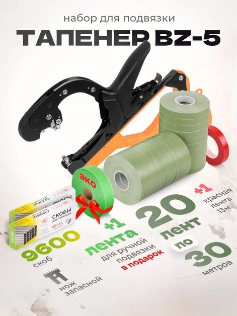 Тапенер BZ-5 + 20 оливковых лент + скобы 9 600 шт + ремкомплект, Степлер садовый для подвязки растений: сравнение цен, характеристики, фото, актуальное наличие и цены.