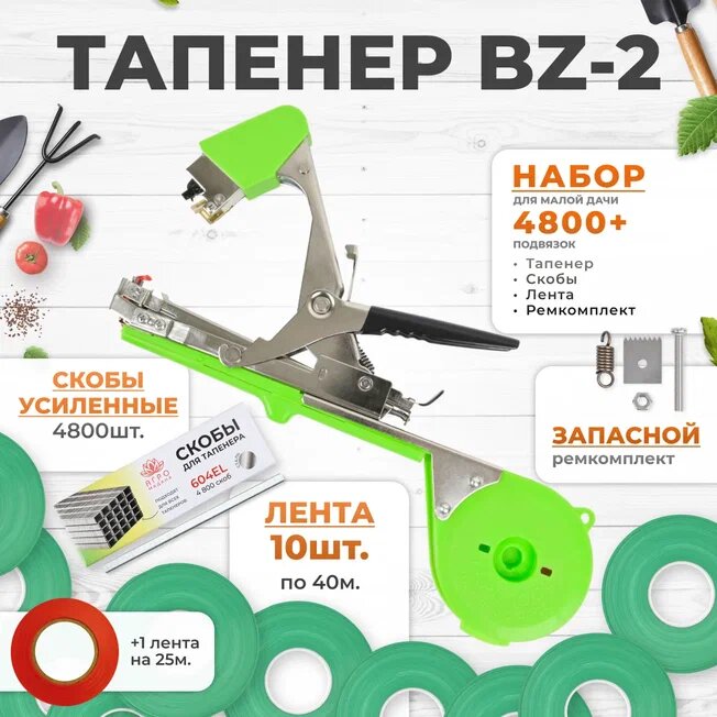 Тапенер для подвязки Bz-2 + 10 зеленых лент + скобы Агромадана 10.000 шт + ремкомплект / Готовый комплект для подвязки: сравнение цен, характеристики, фото, актуальное наличие и цены.