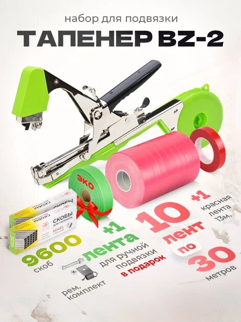 Тапенер для подвязки Bz-2 + скобы 9 600 шт + 10 красных лент + ремкомплект: сравнение цен, характеристики, фото, актуальное наличие и цены.