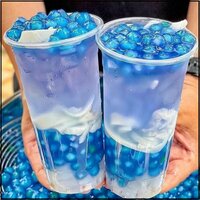 ***Рецепт на 0,5 л: Порошок со вкусом 30 гр. + Порошок сливки 30 гр, 80 мл. горячего чая (или кипятка) - перемешать с порошком до полного растворения, 200 мл. воды + 60 мл. льда (или полностью льда), 30 - 50 г. тапиоки. Вскипятите в кастрюле воду, бросьте в нее тапиоку в соотношении 1 (тапиока):6 (вода), постоянно помешивая, пока шарики не всплывут на поверхность. Варить на медленном огне без крышки 30 минут, время от времени помешивая. После варки бирюзовые шарики тапиоки принимают насыщенный голубой цвет. Не сливая воды, дайте настояться тапиоке ещё около 30 мин. Откиньте тапиоку на дуршлаг и промойте холодной водой. После нужно настоять её в сладком сиропе 15-20 минут. После этого тапиока готова к употреблению.