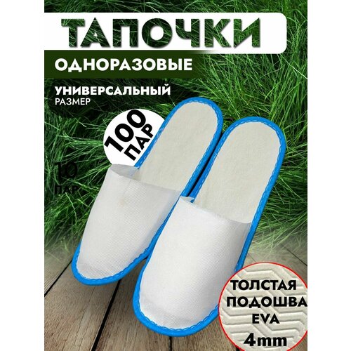 Качественные одноразовые тапочки белого синего цвета. Каждая пара в индивидуальной упаковке, универсальный размер, на толстой подошве EVA 4 мм, прочный спандбонд и надежный кант позволяет подошве сохранять тепло, сухость и чистоту ног, смягчает неровности. Подходят для женщин и мужчин. Подошва хорошо сгибается и не деформируется под весом человека. Тапочки отлично подойдут для отелей, гостиниц, спа и путешествий, так же используют для салонов красоты, бань, больниц.