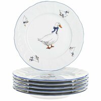 Набор тарелок "Thun1794 Констанция" 24 см/ 6 шт. декор "Гуси" - это изысканный выбор для тех, кто ценит качество и стиль. Изготовленные из фарфора, эти тарелки обладают прочностью и долговечностью, а также привлекательным внешним видом.