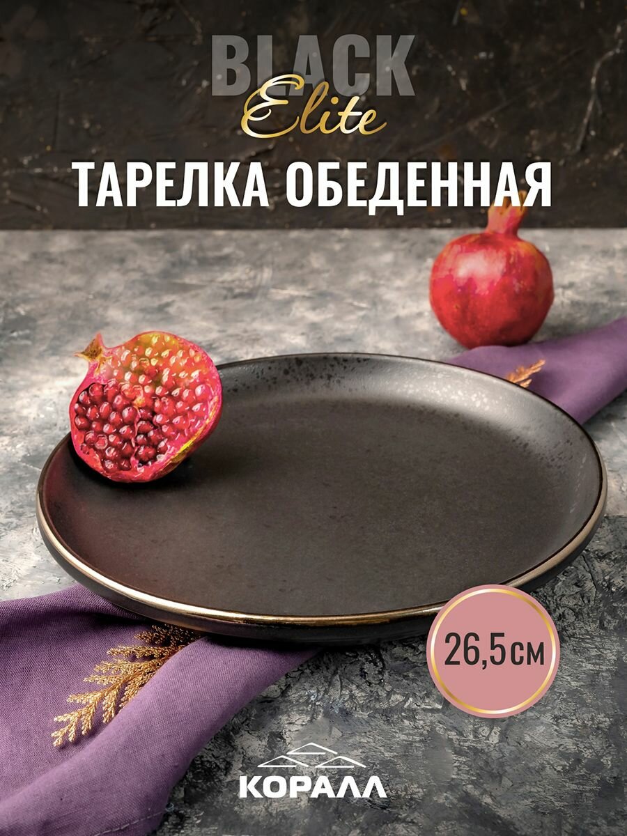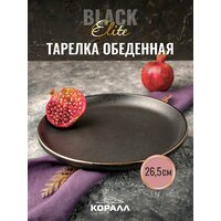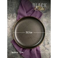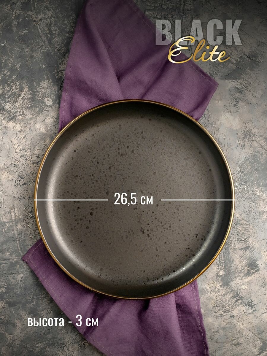 Тарелка из серии Elit black керамическая большая черная диаметр 26 см. плоская с бортиком 3 см.