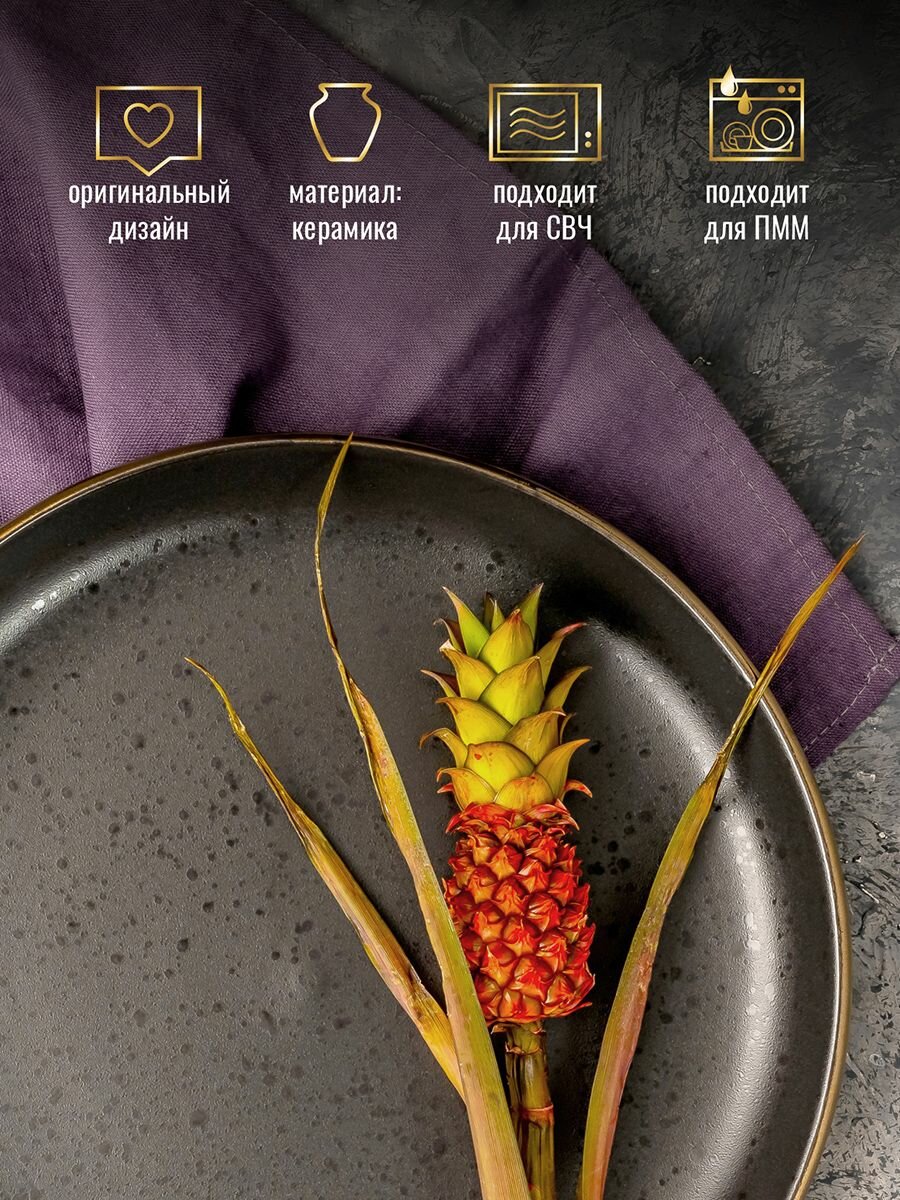 Тарелка для подачи черная круглая подойдет для вторых блюд, пасты, лазаньи, паэльи. Тарелка выполнена в трендовой голландской форме, ровное дно тарелки позволит красиво сервировать ваше блюдо и избежать смешивания продуктов, благодаря диаметру 26 см и удобной форме заменит блюдо для подачи, сервировочную и подставочную тарелку. В сочетании с другими предметами серии большую плоскую тарелку можно использовать в качестве блюда для подачи и подставочной тарелки, что предаст вашей сервировке особую изысканность и обеспечит ресторанную подачу.