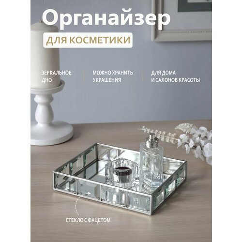 Размеры 20,5х16,5х4см. Органайзер из фацетного стекла, дно зеркальное, цвет металла "под серебро". Стекло, металлический профиль, ручная сборка. Невероятно красивая штука. Металл и фацеты очень гармонично смотрятся друг с другом. Декорируйте свой интерьер со вкусом. Уход: протирать средством для мытья стекло. Можно мыть средством для для мытья посуды, затем насухо! вытирать мягкой тканью. Металлические детали можно начищать абразивной губкой. Точные следы пайки металла - технологическая норма и выбраковке не подлежит! упаковка: транспортировочная коробка из гофрокартона. При получении продукции из стекла в ПВЗ или у курьера проверяйте все стеклянные изделия на целостность. Изделие не должно быть со сколами, трещинами, царапинами или разбито. В противном случае претензии на возврат приниматься не будут.