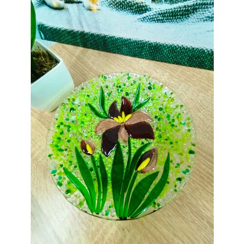 Тарелка декоративная «Ирисы виолет» от «Стекло и руки», цветное стекло, фьюзинг: сравнение цен, характеристики, фото, актуальное наличие и цены.