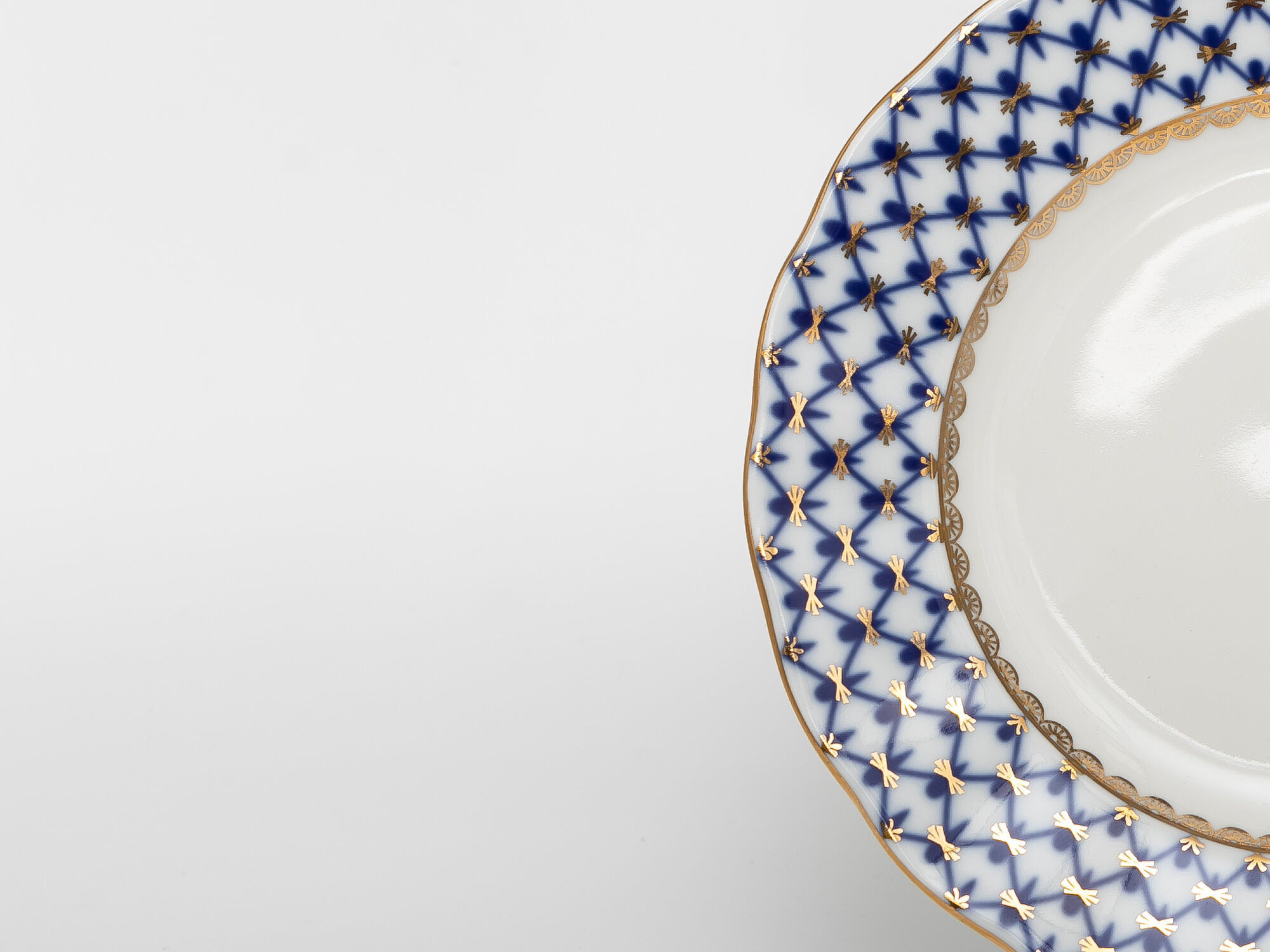 | Дополнительная информация | Тарелка мелкая Кобальтовая сетка ; Форма: Гладкая; Изделие изготовлено из материала: Твердый фарфор; Диаметр: 200 мм; Автор формы: Яковлева Серафима Евгеньевна; Автор росписи: Яцкевич Анна Адамовна; Производитель: Императорский фарфоровый завод (ИФЗ, ЛФЗ), Россия; |