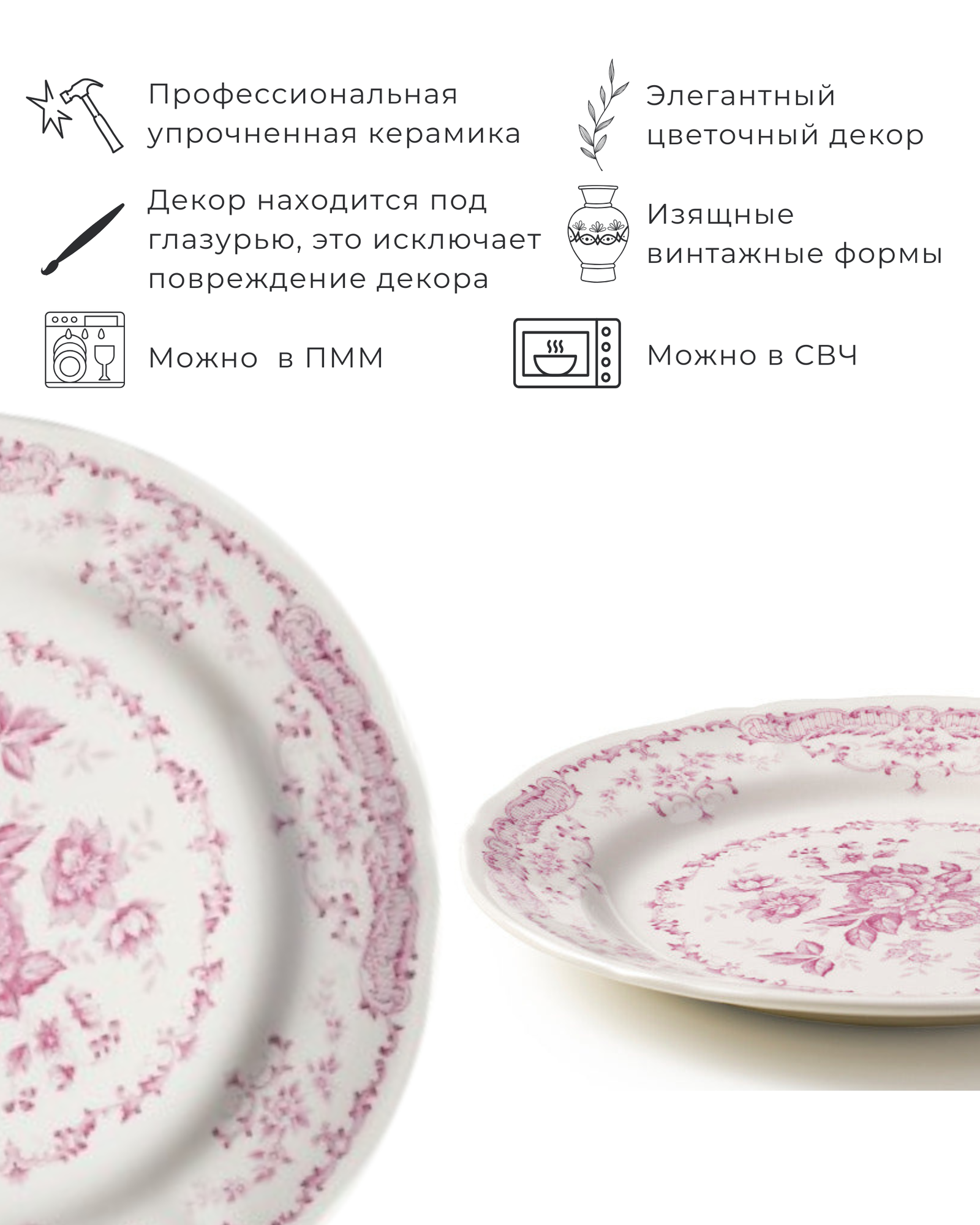 Его можно мыть чем угодно и как угодно часто, рисунок надежно покрыт прочной глазурью. Он не боится никаких мелких происшествий за столом, тарелку можно задеть, царапнуть и даже уронить. Но бить с размаху о каменный пол все же не надо