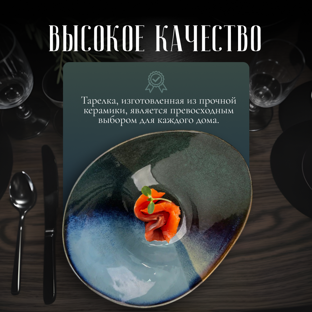 Высококачественная керамическая тарелка, изготовленная с любовью и особым вниманием к деталям не содержит вредных веществ и не вступает в реакцию с продуктами. Керамика сохраняет тепло дольше, позволяя насладиться горячей пищей до последней ложки. Покрытие посуды устойчиво к сколам, царапинам и другим повреждениям.
