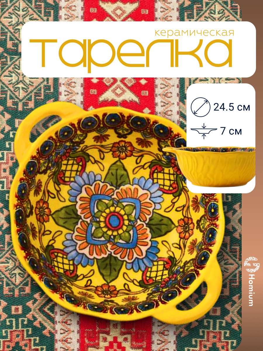 Восточная сказка на Вашем столе! Взрыв красок, симфония форм, танец узоров – все это объединилось невероятно выразительной керамической тарелке Homium Kitchen Multi серии Мехроб. Тарелка с традиционным узбекским орнаментом стилизована под национальный ляган для подачи восточного плова, бешбармака и других блюд. Посуда станет идеальным фоном для блюда, подчеркнув его насыщенный вкус и аромат.