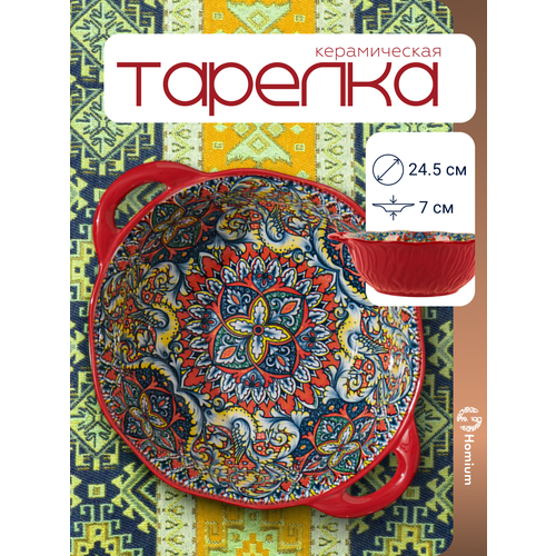 Восточная сказка на Вашем столе! Взрыв красок, симфония форм, танец узоров – все это объединилось невероятно выразительной керамической тарелке Homium Kitchen Multi серии Мехроб. Тарелка с традиционным узбекским орнаментом стилизована под национальный ляган для подачи восточного плова, бешбармака и других блюд. Посуда станет идеальным фоном для блюда, подчеркнув его насыщенный вкус и аромат.