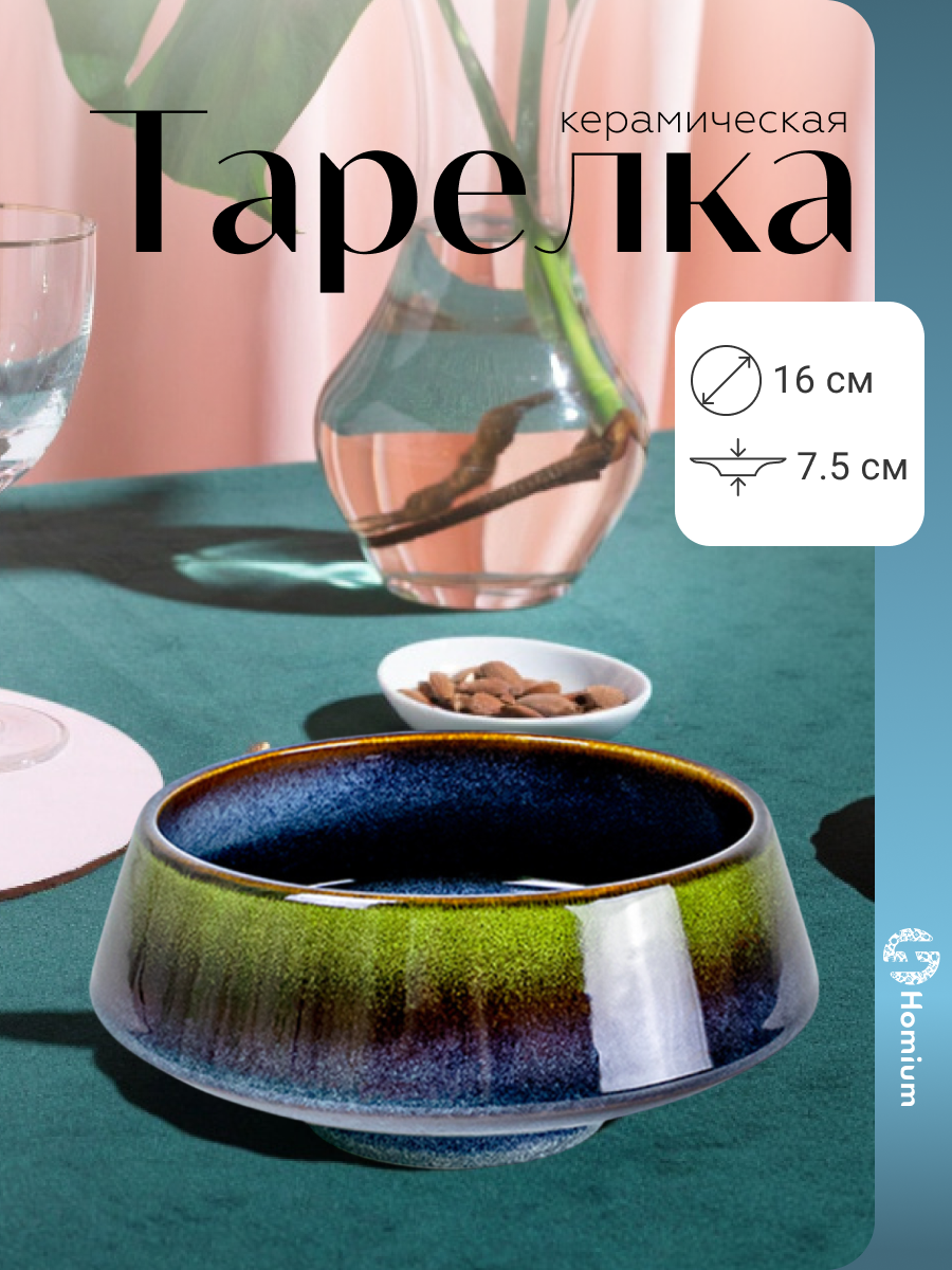Тарелка глубокая для первых и вторых блюд Homium Magistro цвет сине-зеленый (кошачий глаз) D16см: сравнение цен, характеристики, фото, актуальное наличие и цены.