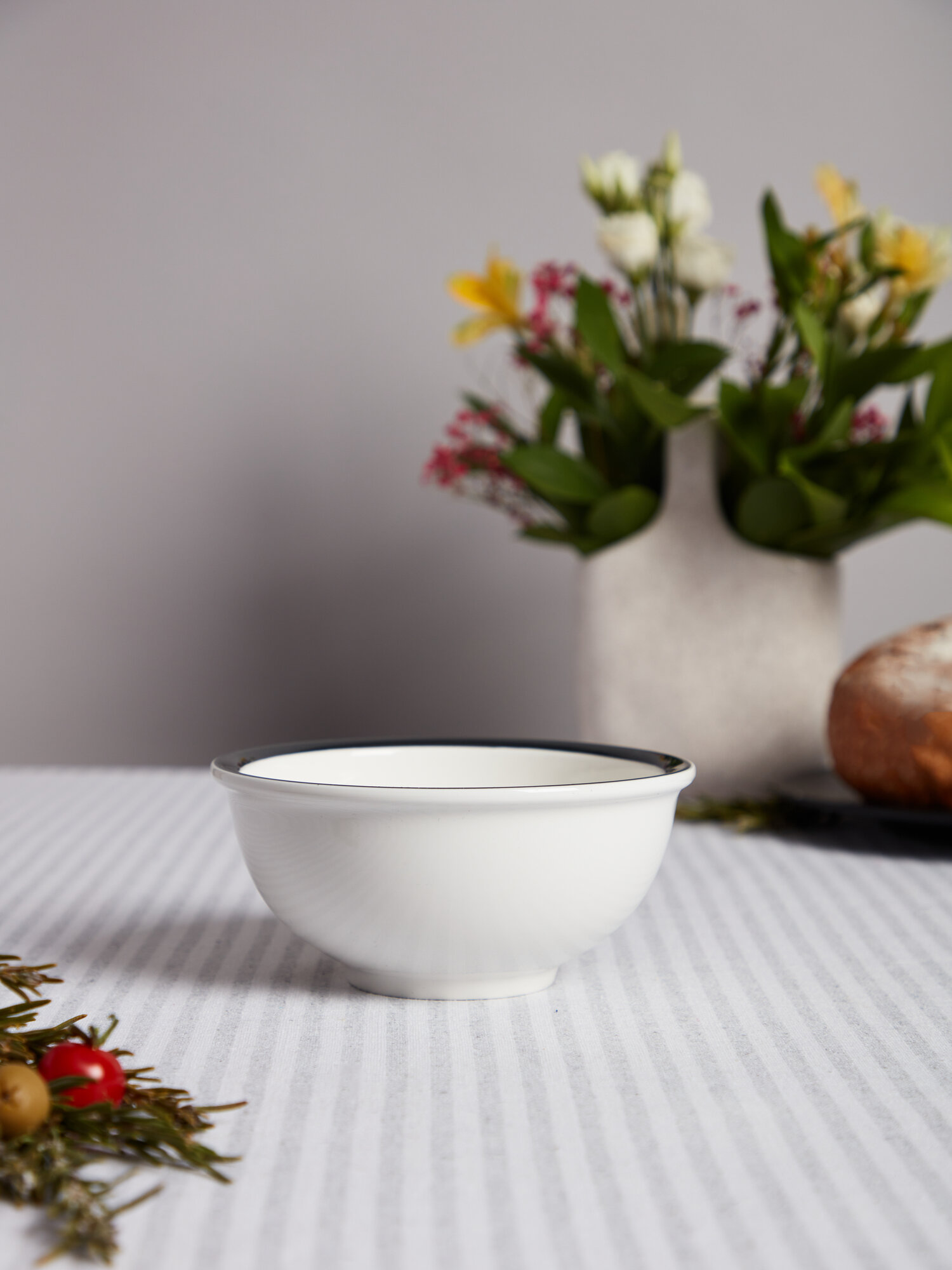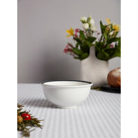 Тарелка выполнена из упрочнённого фарфора с толщиной стенок 4 мм, что обеспечивает ей прочность и износоустойчивость. Фарфоровая миска имеет диаметр верха в 15 см, высоту 7 см и объем 500 мл, что позволяет использовать ее для подачи первых блюд, супа, бульона, салата, фруктов и снеков.