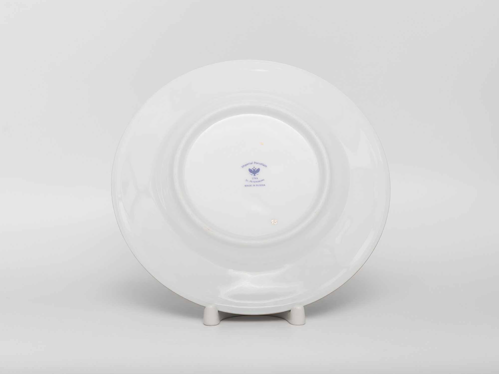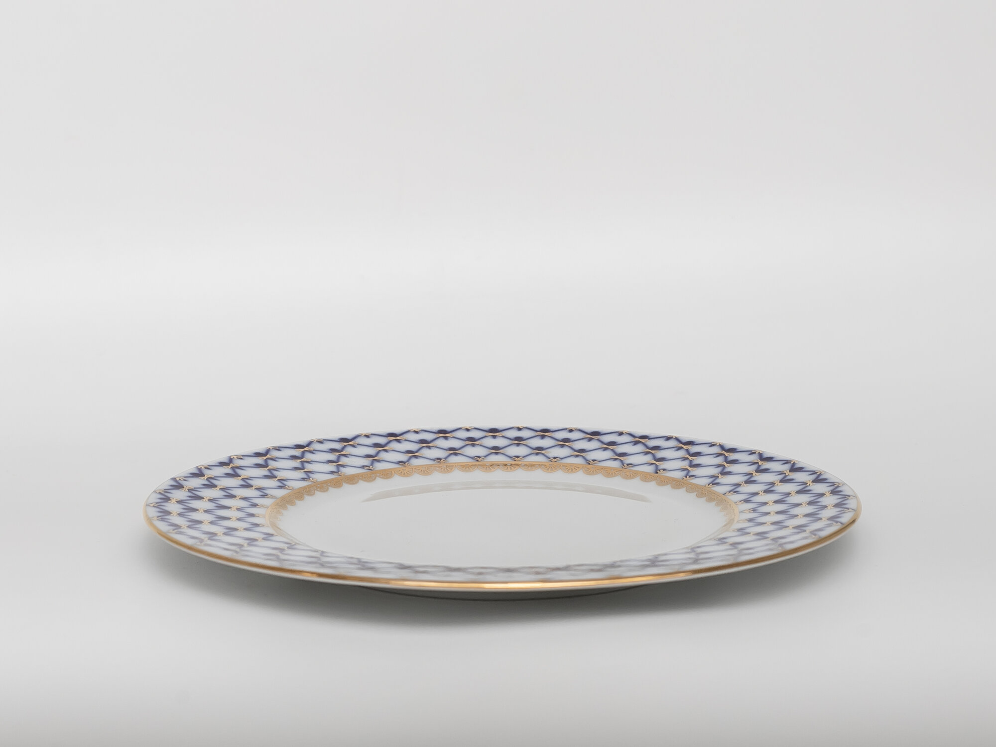 Изделие выполнено на легендарном Императорском фарфоровом заводе, основанном в 1744 г. и чей вклад в фонд декоративно-прикладного искусства бесценен. Императорский фарфор гармонично сочетают в себе королевский шик, художественное изящество и современные тенденции. Тарелка небольшого размера для десерта или основного блюда. Твердый фарфор, подглазурная деколь, роспись золотом. Автор рисунка - Анна Яцкевич. Диаметр - 20 см. Высота - 2 см. Рекомендуем мыть вручную. Рисунок "Кобальтовая сетка" был создан в конце 1944 года художником Анной Яцкевич. Нет достоверных данных, что именно послужило для художника прообразом созданного рисунка. Возможно, роспись "Собственного сервиза", созданного Д. И. Виноградовым в 1750-х годах, возможно мотивы сервиза Венской фарфоровой мануфактуры, хранившиеся в фондах заводского музея. Некоторые источники указывают, что это ассоциации с переклеенными крест на крест блокадными окнами ленинградских домов.