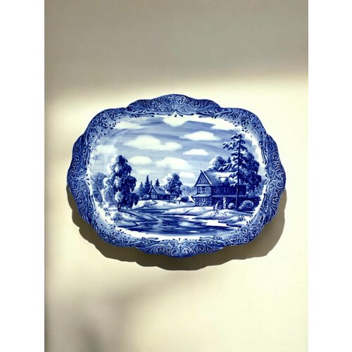 Фарфоровая настенная тарелка в стиле Гжель. Ручная роспись русского пейзажа в бело-синих тонах придаёт этой авторской работе особую изысканность и утонченность. Идеальное сочетание традиционного ремесла и уникального дизайна делает эту тарелку незаменимым элементом интерьера в любом доме. Подарите себе или близкому человеку кусочек русской красоты и уюта с этой превосходной настенной тарелкой Гжель.