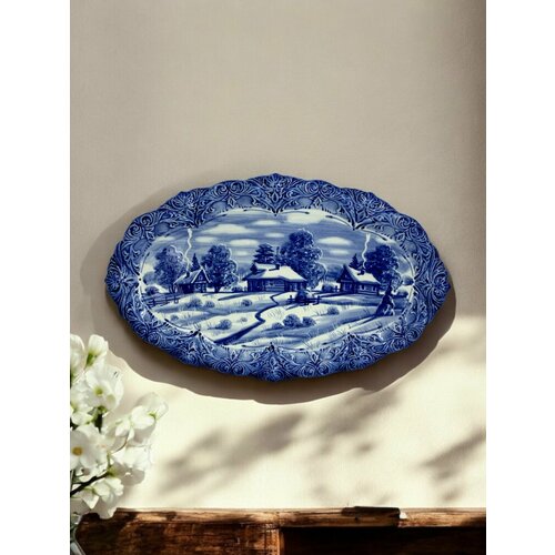 Фарфоровая настенная тарелка в стиле Гжель. Ручная роспись русского пейзажа в бело-синих тонах придаёт этой авторской работе особую изысканность и утонченность. Идеальное сочетание традиционного ремесла и уникального дизайна делает эту тарелку незаменимым элементом интерьера в любом доме. Подарите себе или близкому человеку кусочек русской красоты и уюта с этой превосходной настенной тарелкой Гжель.