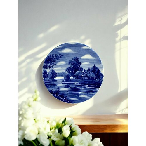 Купить Тарелка настенная декоративная панно «Пейзаж» гжель фарфор ручная работа с доставкой по всей России.