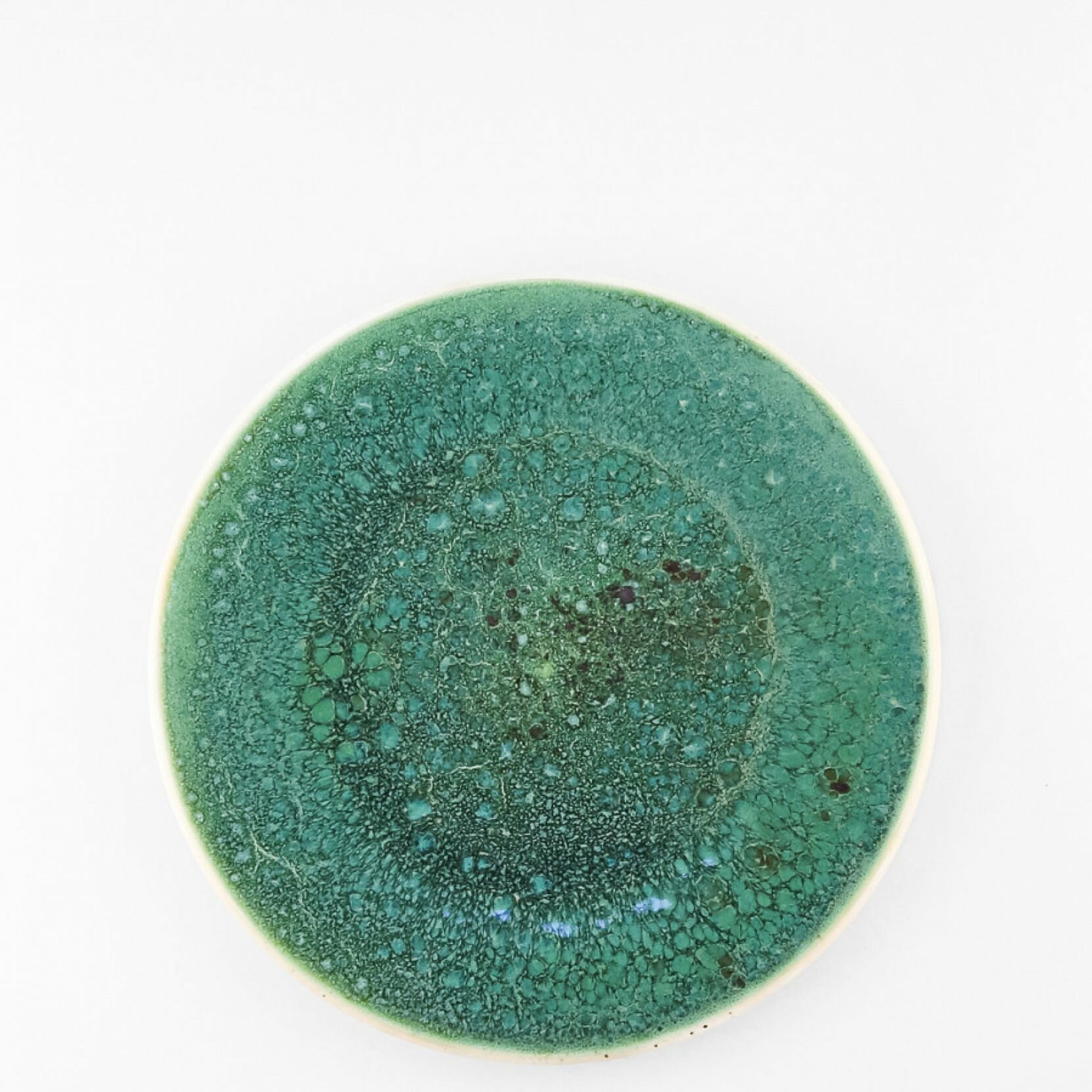 Тарелка имеет плоскую круглую форму с широким бортиком и подходит для закусок, салатов или десертов. Диаметр тарелки - 20 см, высота - 2 см.