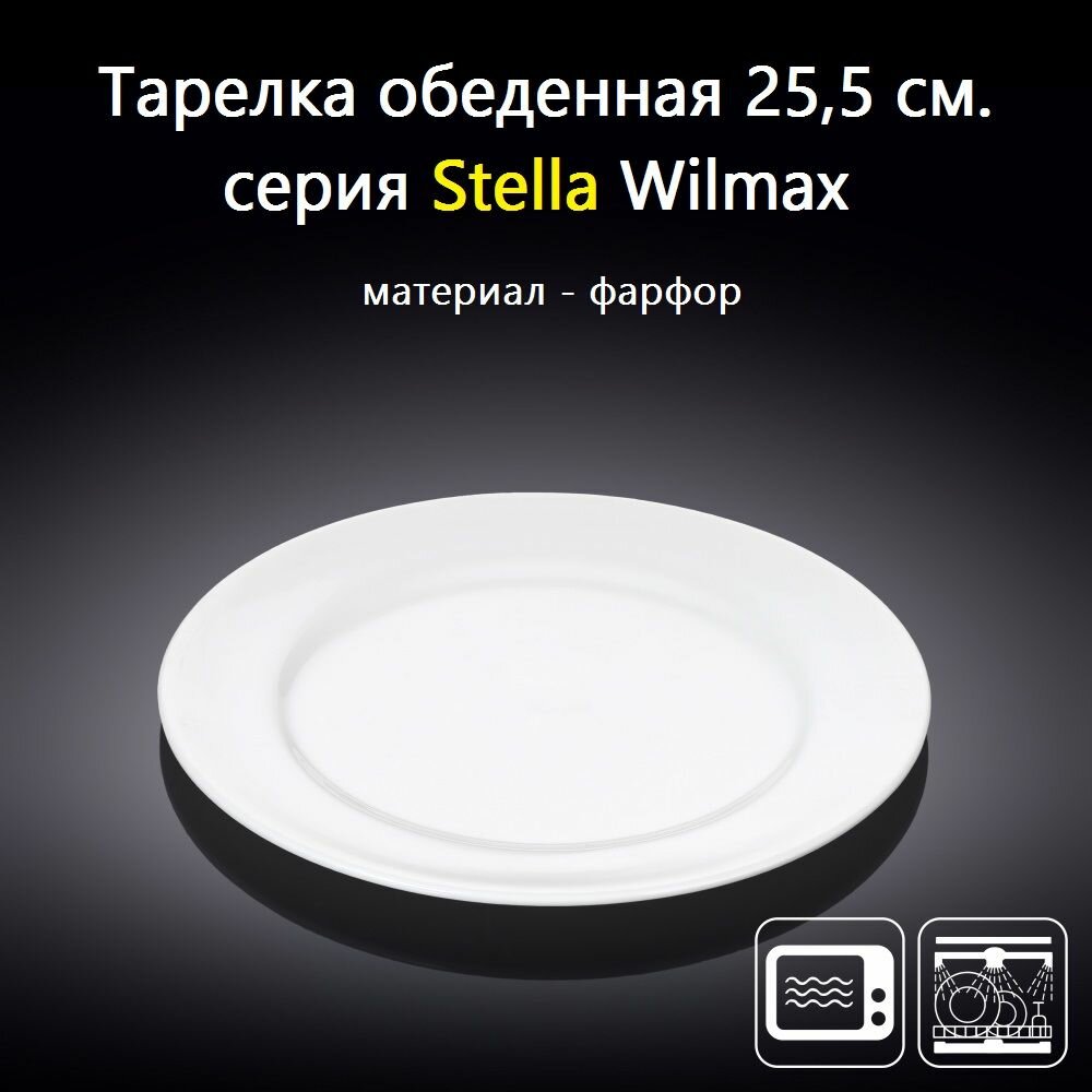 Тарелка обеденная с плоским краями 25,5 см. Wilmax: сравнение цен, характеристики, фото, актуальное наличие и цены.