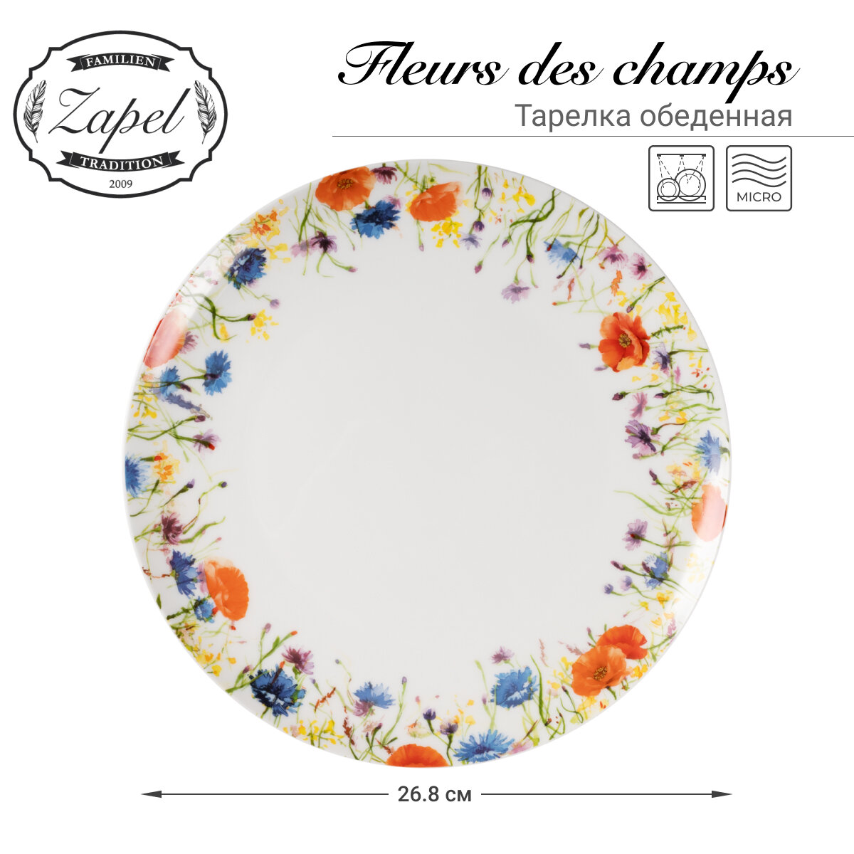 Тарелка обеденная Zapel Fleurs des champs 26,8см, фарфор, белая с цветами: сравнение цен, характеристики, фото, актуальное наличие и цены.