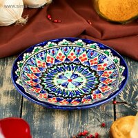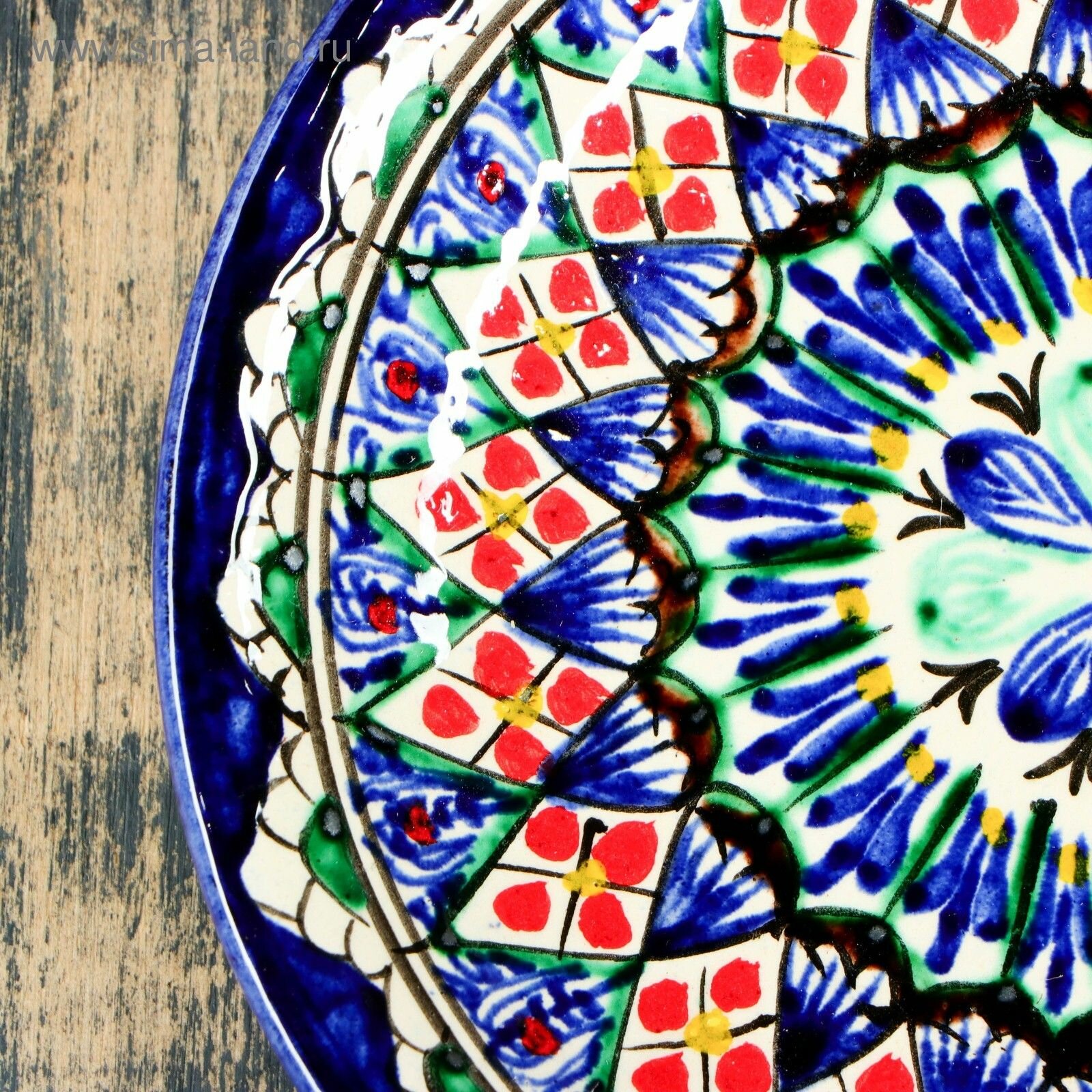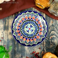 Купить Тарелка Риштанская Керамика Цветы , d 15 см, керамика, синяя, 4 шт с доставкой по всей России.