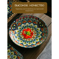 Восточная сказка на Вашем столе! Взрыв красок, симфония форм, танец узоров – все это объединилось невероятно выразительной керамической тарелке Homium Kitchen Multi серии Мехроб. Тарелка с традиционным узбекским орнаментом стилизована под национальный ляган для подачи восточного плова, бешбармака и других блюд. Посуда станет идеальным фоном для блюда, подчеркнув его насыщенный вкус и аромат.
