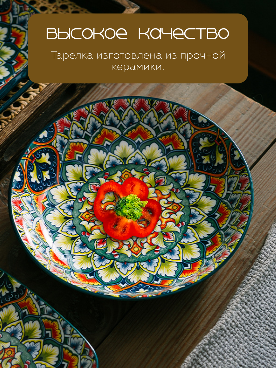 Если вы хотите добавить в свою жизнь ярких красок и создать неповторимую атмосферу на своем столе, то эта керамическая тарелка – именно то, что вам нужно. Восточная посуда станет не только функциональным предметом, но и настоящим талисманом, который будет приносить в ваш дом радость, счастье и процветание.