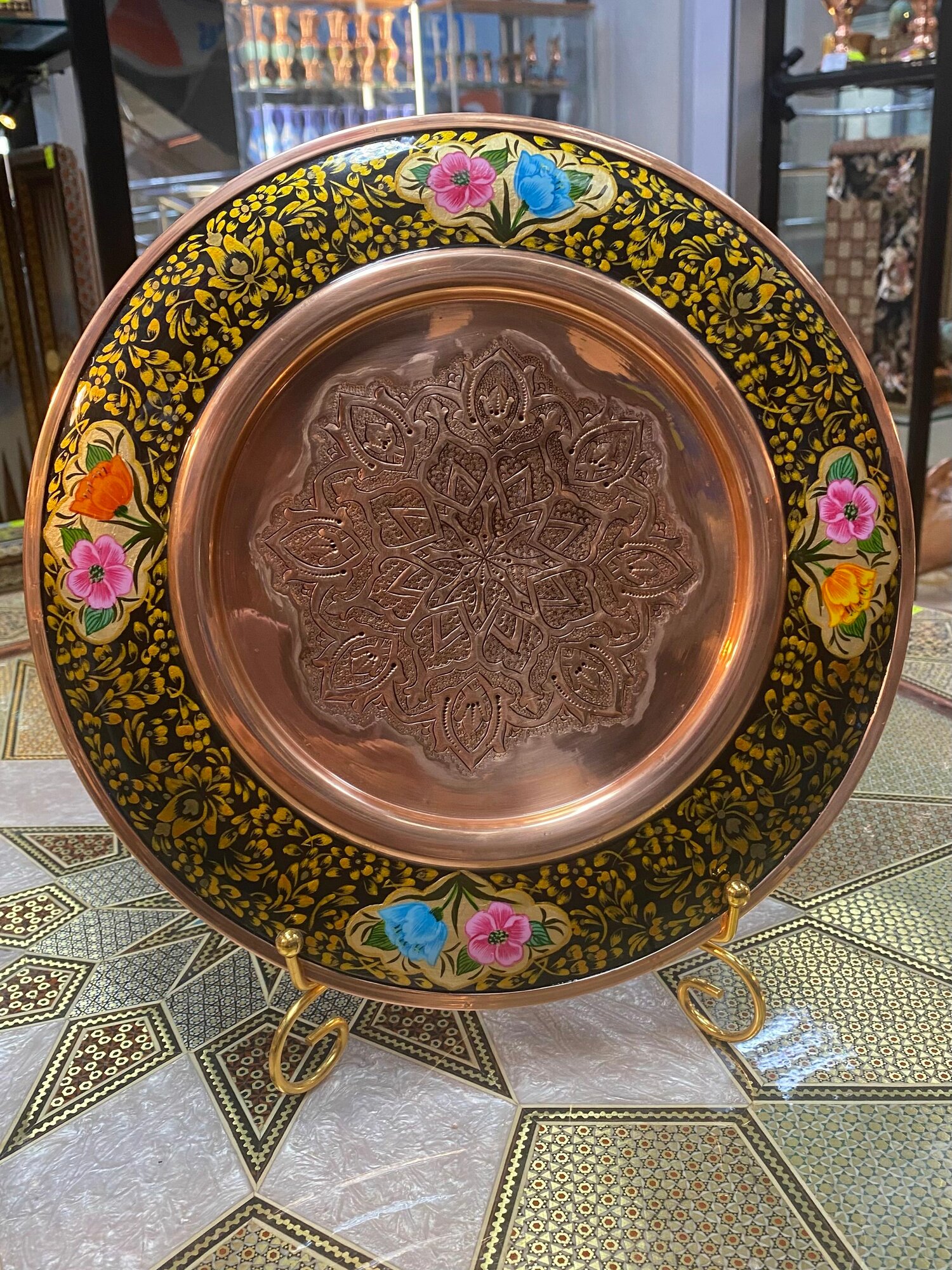 Тарелка\Блюдо. Выполнена в живописной технике "Ташир", в одной из самых загадочных стран Ближнего Востока - Иране. Техника Ташир происходит из древней столицы Ирана, г. Исфахан. Мастера чтут и уважают многовековые традиции и создают уникальные предметы ручной работы в технике "Ташир". Ташир" - это использование флористического или анималистического орнамента в росписи декоративных предметов. Такой предмет отлично подойдет в качестве оригинального подарка на День Рождения, Новый год, 23 Февраля, Годовщину, Свадьбу. Декоративная посуда может быть использована в качестве элемента декора интерьера: квартиры, загородного дома, офисного помещения или ресторана.